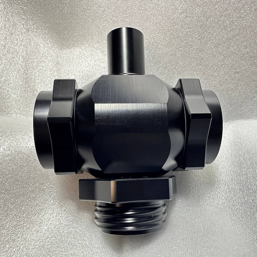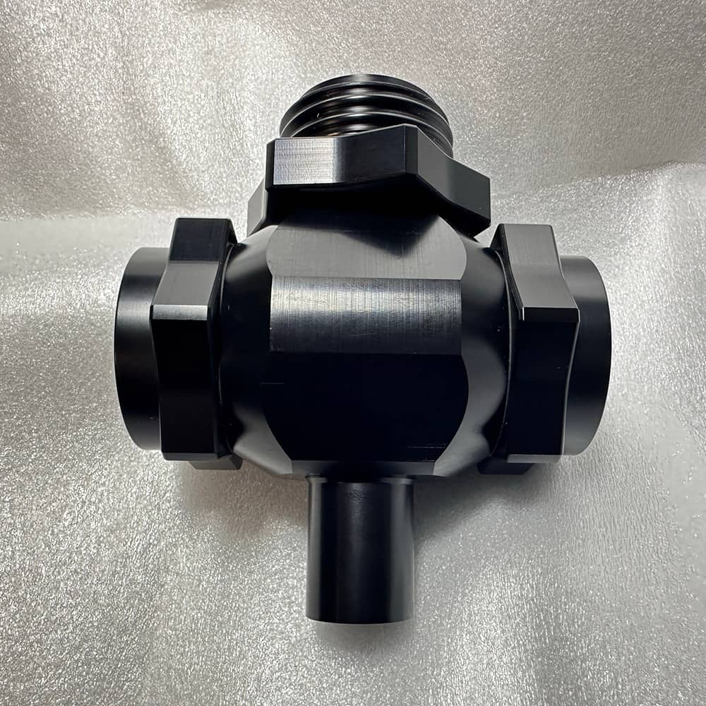 This has one male-port (top), two female-ports (both sides), and 22mm-pipe (bottom).