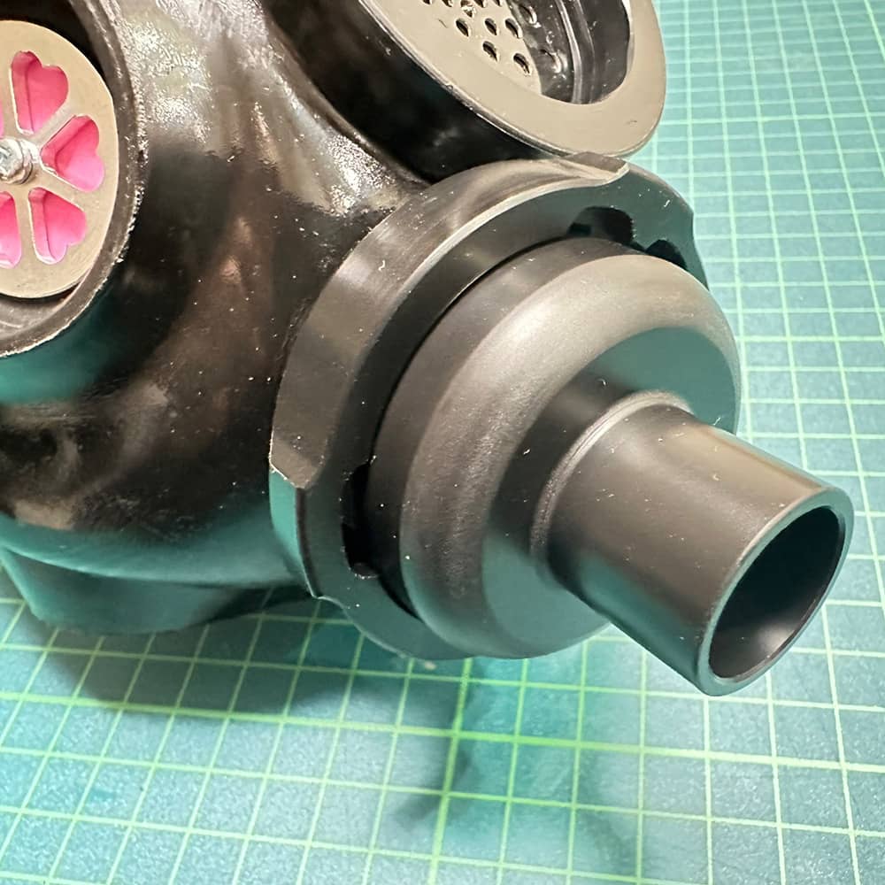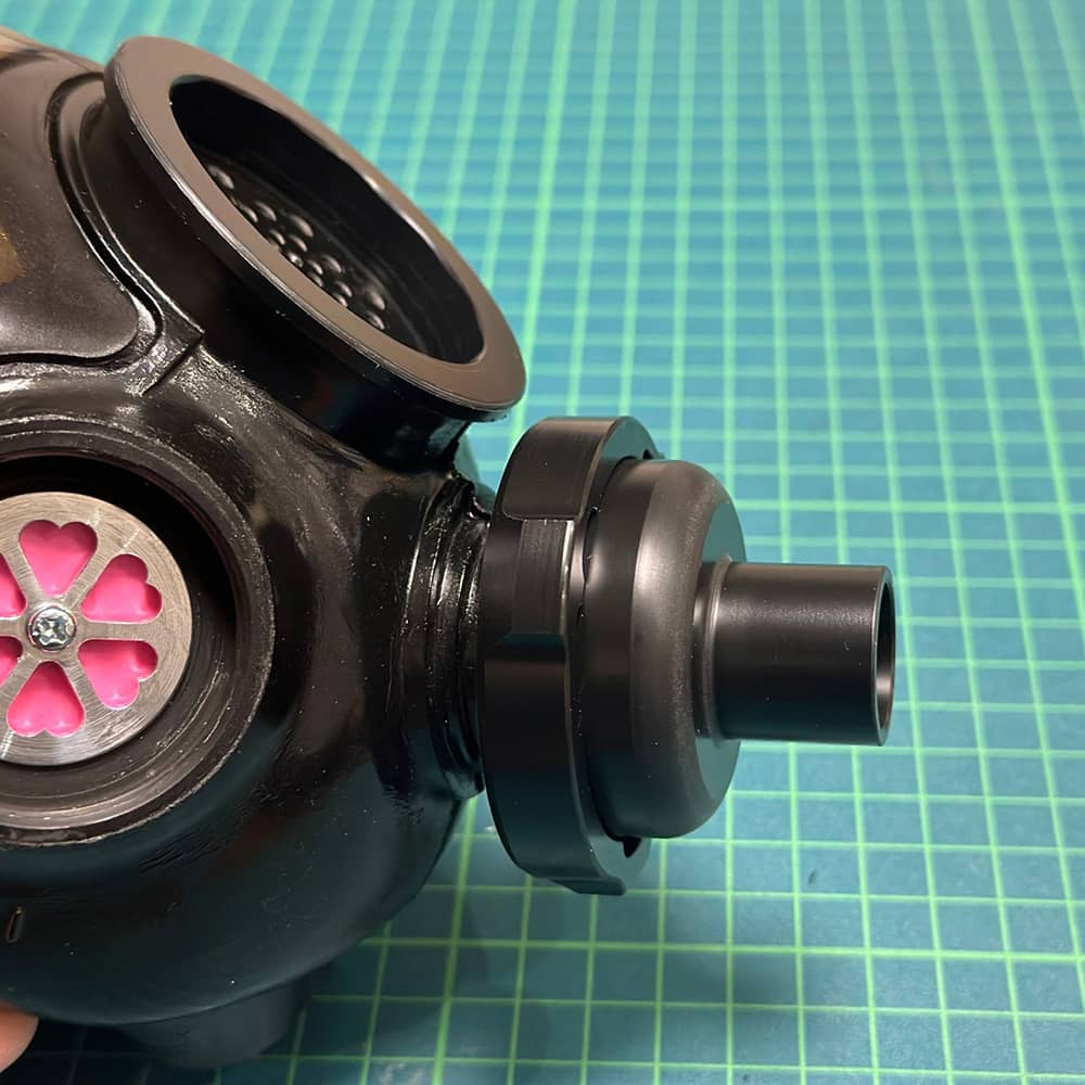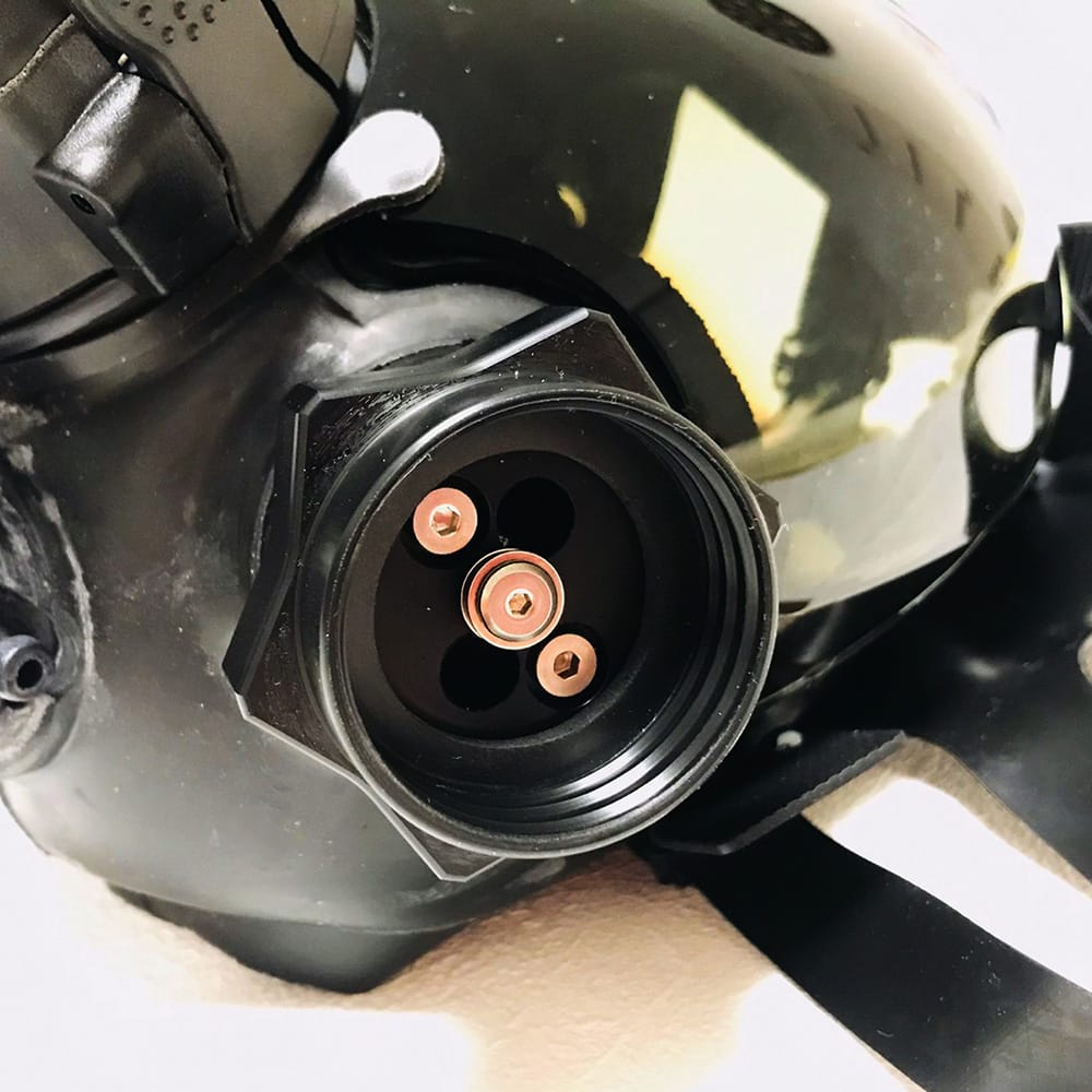 This adaptor is for connecting a gas mask to Rubber's Finest's Rubber SmellBag, and can be used with various gas masks.