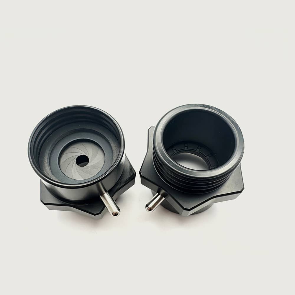 This adaptor has a male gas mask thread and you can connect various gas mask gadgets with female gas mask threads.