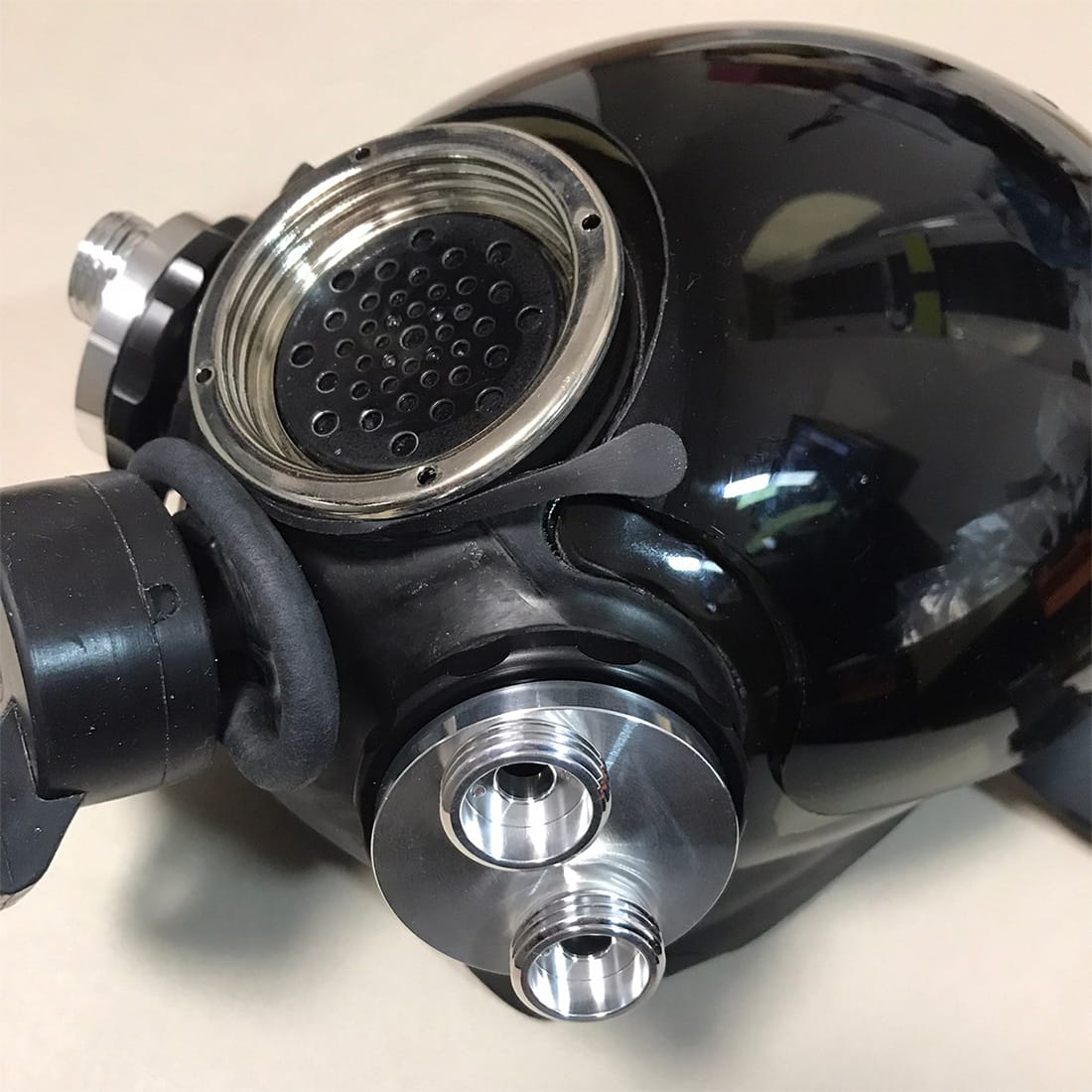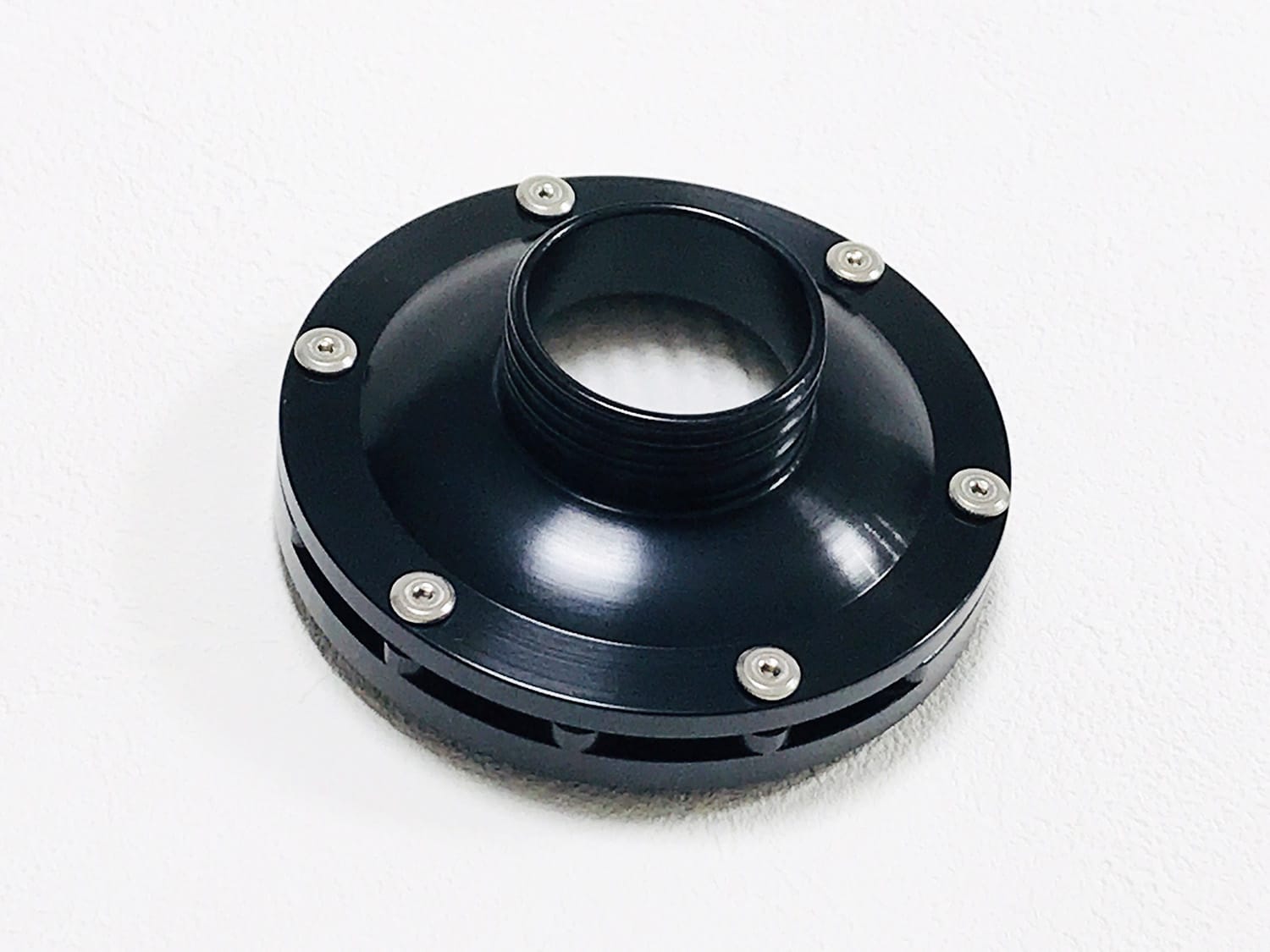 これにシリコンゴム製カバーを被せることで、排気の漏れなく、排気口にφ40mmのオスネジを通じてガスマスク用グッズが接続できます。