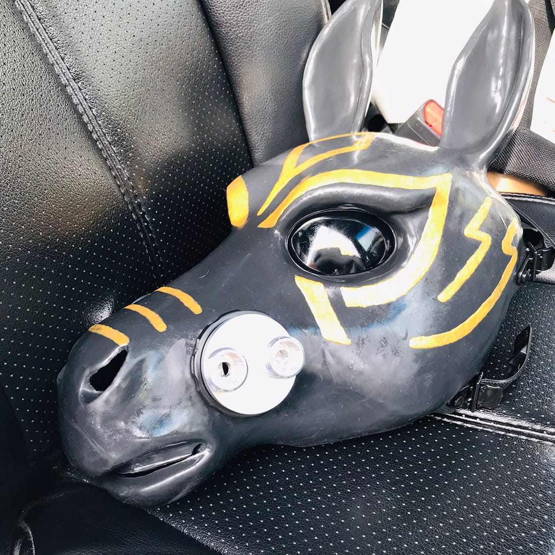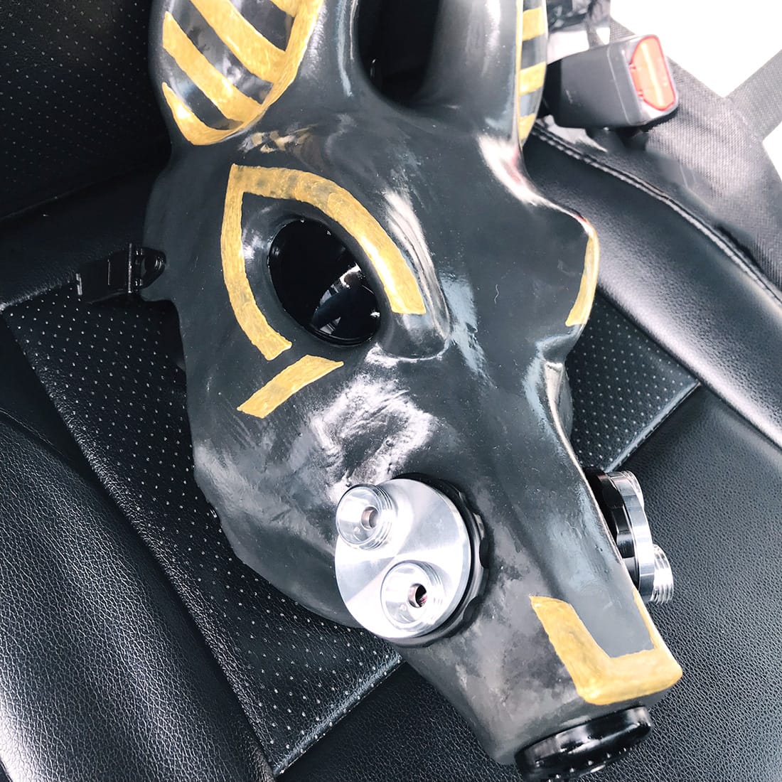 GP5のガスマスクにメッキやカラー処理などのカスタマイズを施したものです。