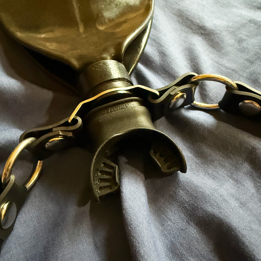 Rubber's FinestのRubber SmellBag各種にガスマスクを接続するためのアダプターです。